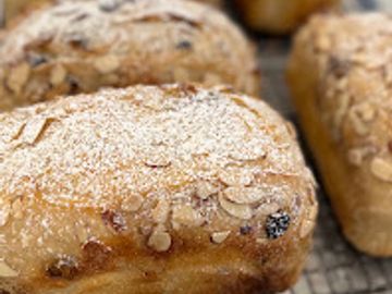 A festive holiday loaf filled with tart cranberries, creamy white chocolate, and a sprinkle of sliced almonds - all dusted with powdered sugar for a snowy finish. Soft, slightly sweet, and full of Christmas cheer in every slice. Only sold during December!