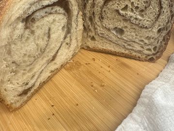 Sweet, aromatic, and oh-so comforting. Layers of cinnamon sugar are rolled into our tender sourdough dough, creating a golden loaf that's perfect for French toast or an afternoon snack.