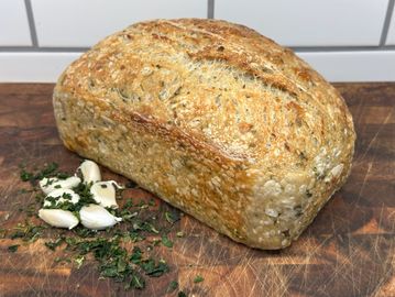 Fragrant and flavorful, this loaf is infused with fresh roasted garlic and a blend of Italian herbs for the perfect savory bite. Toast it, pair it with pasta, or enjoy it warm with a drizzle of olive oil. Delizioso!