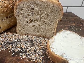 All the flavor of your favorite bagel, baked into our naturally fermented sourdough loaf. Each slice is speckled with toasty sesame and poppy seeds, roasted garlic, and onion flakes - a perfect balance of crunch and tang.