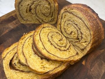 A seasonal favorite filled with pure pumpkin puree and swirled with warm autumn spices. Soft, slightly sweet, and perfect for toasting - it's everything you love about fall in one loaf. This one is baked in October only.