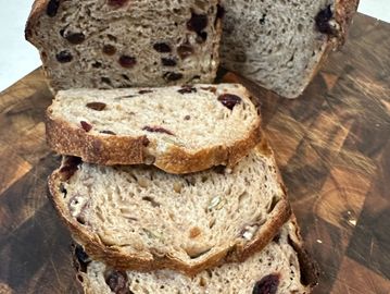 Bright, tangy cranberries and a hint of fresh orange zest give this loaf a sweet and citrusy twist. Lightly toasted with butter, it's a cozy morning treat or a festive addition to your holiday table.
